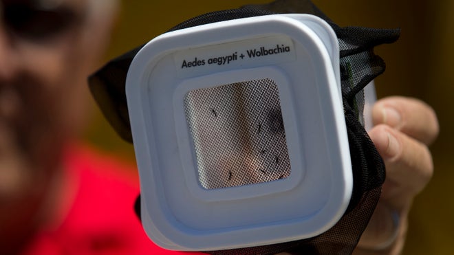 The mosquitoes released Wednesday are infected with the Wolbachia bacteria that can block them from getting the highly infectious disease dengue and passing it to humans.