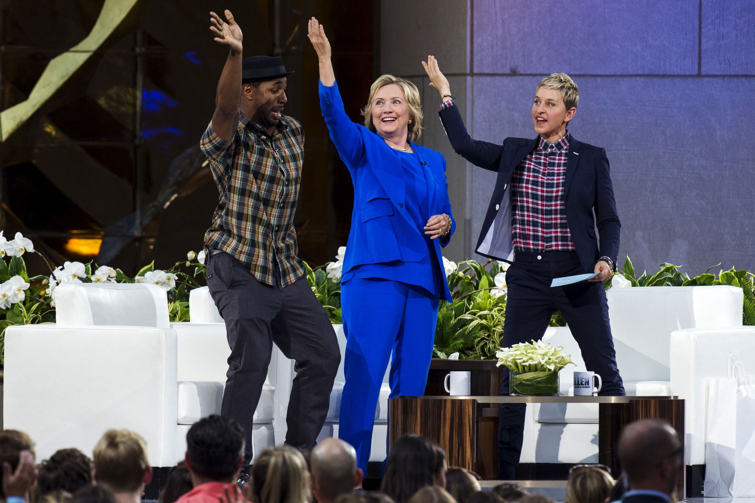 It’s the season premiere of “The Ellen DeGeneres Show” in Rockefeller Plaza, and Clinton is bopping, waving, laughing and enjoying herself oh-so-conspicuously. She resolutely keeps a smile on her face even when DeGeneres asks about Clinton’s e-mail controversy.